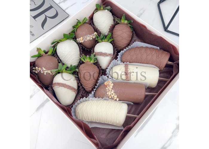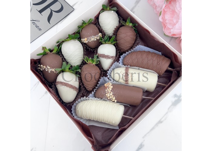 Состав позиции: Клубника в шоколаде 8 шт бананы 4 шт.